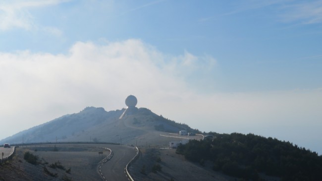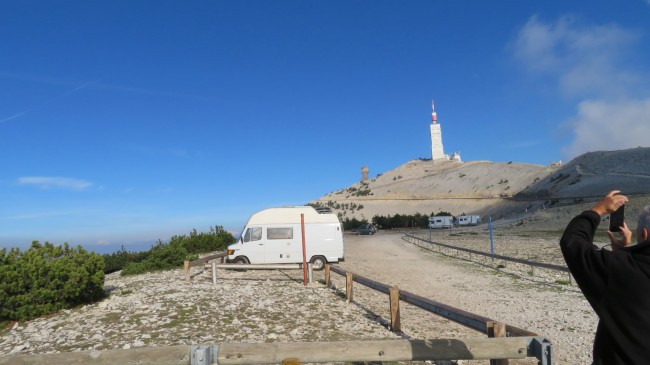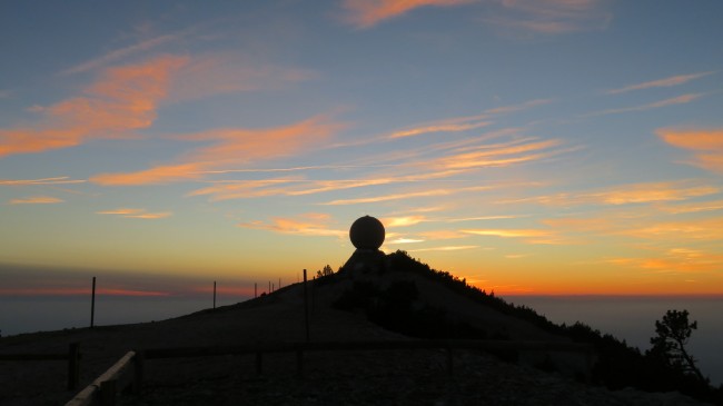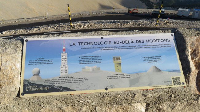 Szczyt Mont Ventoux jest wszechstronnie wykorzystany - już w 1873 roku zaczęto tu prowadzić obserwacje meteorologiczne. Dziś zatrzymujący się tutaj obserwują niesamowitą panoramę we wszystkie strony świata, ale też ciekawe instalacje technicznie. Dwa obserwatoria meteorologiczne - starsze drewniane z 1954 roku i obok nowe ulokowane w potężnej betonowej wieży, której pancerny wygląd podpowiada jakie tu bywają wiatry, rekord 320 km na godzinę w 1967 roku. Kilkaset metrów na zachód zwraca uwagę kula chroniąca anteny radarowego systemu kontroli ruchu powietrznego nad całym południem Francji. Kilometr na wschód, nieco pod szczytem przyciąga uwagę płaski sztucznie zniwelowany teren wielkości połowy boiska piłkarskiego - to pozostałość zimnej wojny - pojedynczy element systemu SSBS - 18 wyrzutni rakiet strategicznych z głowicami nuklearnymi, które miały polecieć w ataku odwetowym. Na szczęście dla tej pięknej okolicy system się przestarzał i z końcem XX wieku rakiety przeniosły się do okrętów podwodnych i pod skrzydła samolotów Rafael, a wielokilometrowe sztolnie (podobno) zasypano.