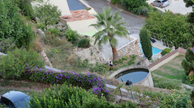 Więc dalej... Zbliżamy się powoli go Grasse. Nawet mieliśmy w planie odwiedziny w ponad stuletniej wytwórni perfum ale zrezygnowaliśmy. Miejscowość bardzo duża. Myśleliśmy, że to miasteczko, a to hotel na hotelu i kasyno na kasynie, z wysoką zabudową. Klimat przełomu XIX i XX wieku. Można powiedzieć że w powietrzu unosi się atmosfera luksusu. James wcisnął się do ścisłego centrum. W każdej chwili spodziewałam się metalowych słupków wysuwających się z jezdni i blokujących wjazd. Ale nie! Ufff... Główna droga obrośnięta wysokimi palmami. Wszystkie domy w tych charakterystycznych kolorach południa. Nie ma żadnej możliwości zatrzymania się. Mamy skojarzenia z Monaco , tylko że tam było jeszcze gorzej o ile to w ogóle możliwe. Zdjęcia robię z samochodu. A widoki coraz piękniejsze. Pniemy się coraz wyżej . Mijamy ukryte w skałach bramy do posiadłości, zjazdy do posesji o tak szalonym nachyleniu i tuż nad przepaścią że trzeba mieć naprawdę stalowe nerwy tu mieszkając. Wszędzie wysokie mury ciągnące się dziesiątkami metrów, obrośnięte śródziemnomorską roślinnością, tylko możemy się domyślać co jest za nimi. Czasem mignie nam basenik wypełniony jeszcze wodą ale to w tych skromniejszych miejscach. Mury skutecznie ukrywają swoich mieszkańców. Wiele razy mijają nas Porsche.