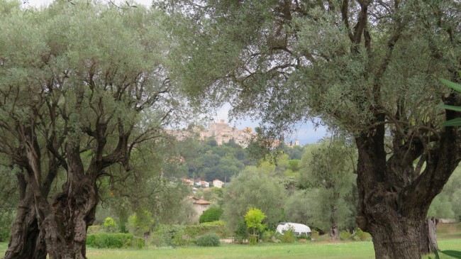 Jeszcze spacer do miejscowości. Bardzo blisko. Pięknie. Czyściutko, malowniczo, punkt obserwacyjny całej okolicy i widok nawet na oddalone o kilkanaście kilometrów Morze Śródziemne. Przetrwała nawet brama z XV wieku. I wszystkie te domy są zamieszkane, z okien wydobywały się smakowite zapachy, a ludzie wracali do domów ...