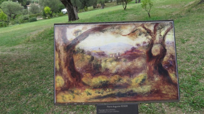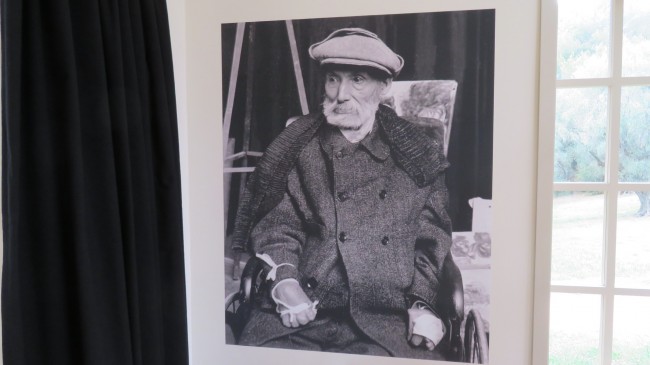 Obrazów jest niewiele- kilka sztuk wypożyczonych z Musee d'Orsay ale jest sporo zdjęć, a nade wszystko filmy przedstawiające samego artystę, który mimo, że pod koniec życia sparaliżowany przez rozwijający się reumatyzm to zachował radość życia i chęć do pracy. W czasie swojego życia stworzył ok. 6 000 dzieł! Możemy podziwiać jego pracownię , specjalną altanę zbudowaną żeby światło słoneczne tak ważne dla impresjonistów wpadało tak jak on chce i pod takim kątem jak chce (umożliwiały to liczne ciężkie kotary). Jest kilka pomieszczeń w których zachowano fragmenty kuchni, łazienki ( z bidetem!), a nade wszystko ogród który nas oczarował. Te dziesiątki starowinek - drzew oliwnych są po prostu wspaniałe! I jak dowiedzieliśmy się z filmu gdzie syn Renoira opowiadał o ojcu - to było normalnie funkcjonujące gospodarstwo - tłoczono oliwę z oliwek, robiono wino, przerabiano pomarańcze. Zresztą żona Augusta Renoira była chłopką, on też był z ludu i początkowo pracował w fabryce porcelany. Potrafił wspaniale wykorzystać biznesowo talent.