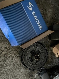 Dodatkowo- jak już zrzuciliśmy skrzynię- to od razu zdecydowałem się na wymianę kompletnego sprzęgła. Szkoda było przy takiej robocie tego nie zrobić.