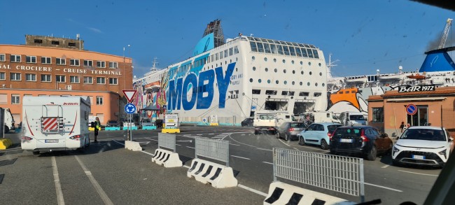 Po nocy spędzonej w porcie w Livorno wjeżdżamy na prom armatora Moby. Pół godziny opóźnienia i wypływamy o 9.30. Kamperów jest mnóstwo na pokładzie, my zjeżdżamy na sam dół do garażu 1-2. Dokładnie po 8 godzinach jesteśmy w porcie w Olbi. Na noc jedziemy 18km na poludniowy-wschód do Porto Tawerna i tu zostajemy na noc: