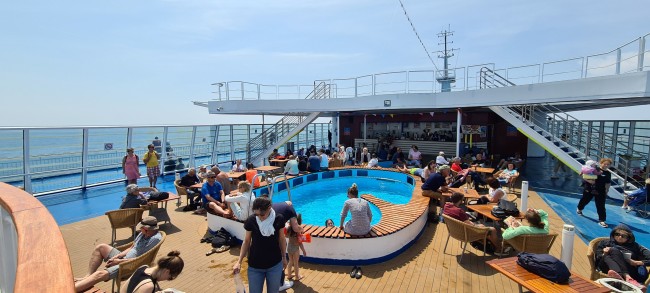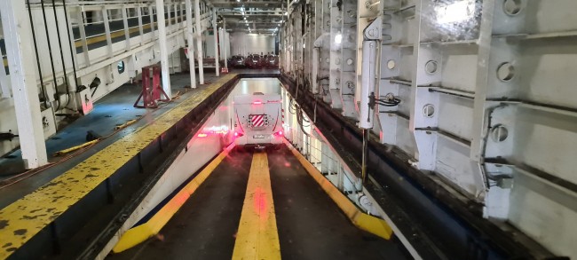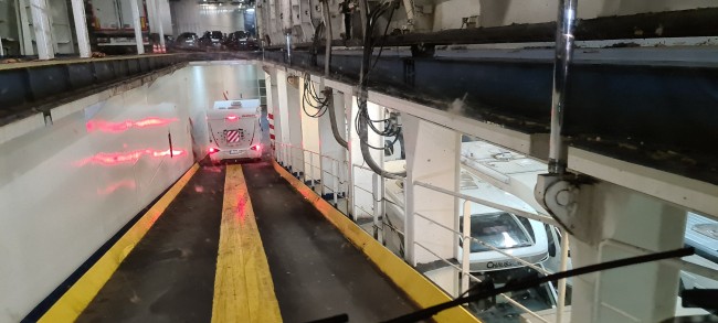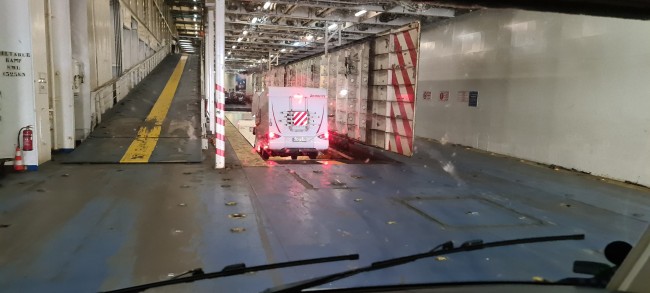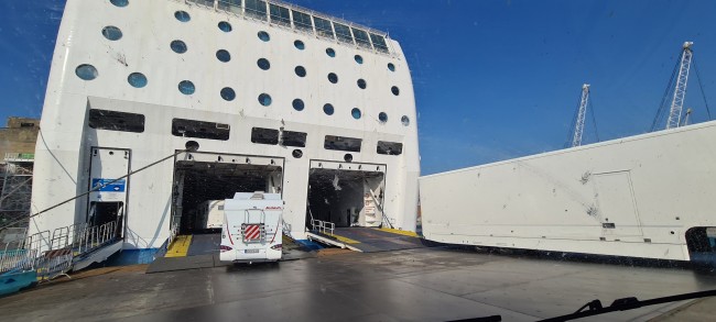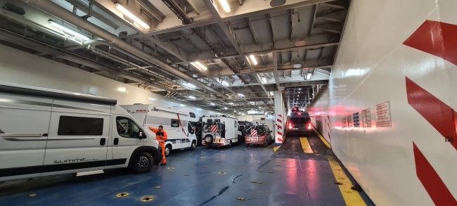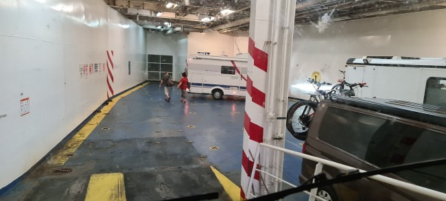 Kampery parkowały w różnych miejscach: my byliśmy w "piwnicy" promu i tutaj były tylko kampery. Ale na "parterze" kampery były razem z dostawczymi i ciężarówkami. Natomiast osobówki na wyższych piętrach się znajdowały. Organizacja sprawna i logiczna. |