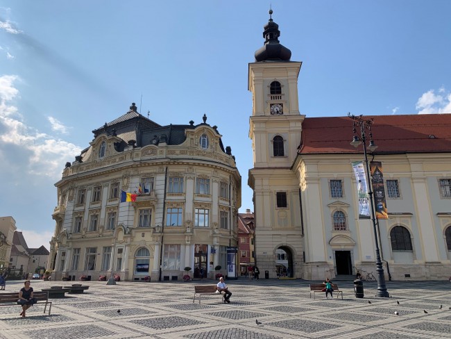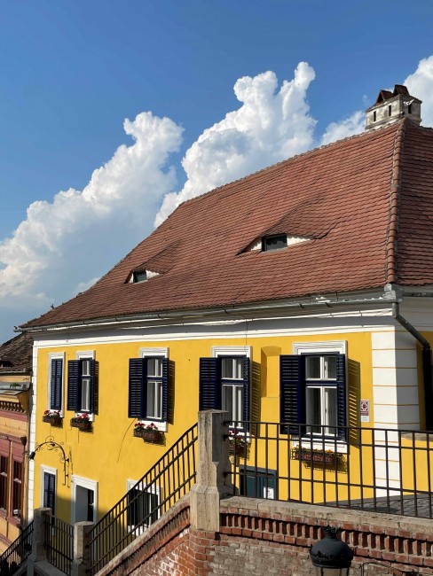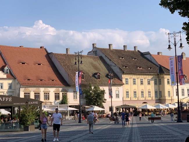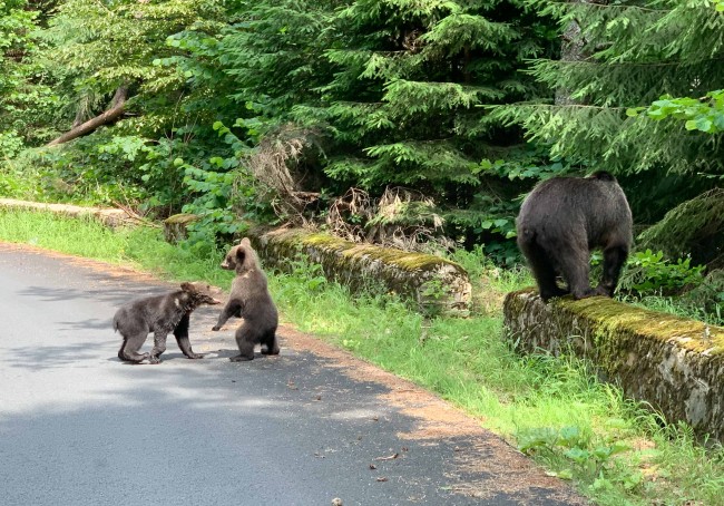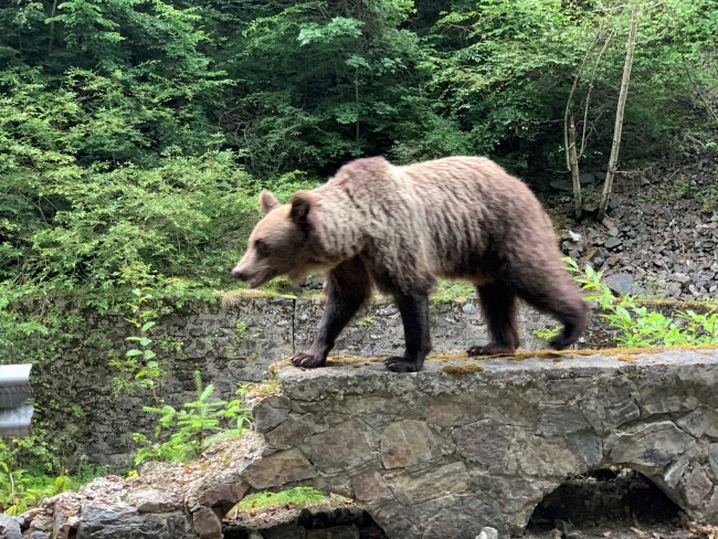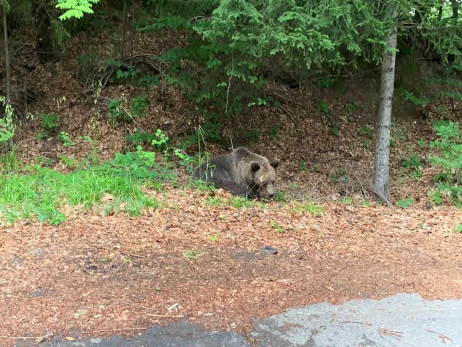 Dojeżdżamy do miejscowości Sybin (Sybiu). Udaje nam się zaparkować na płatnym parkingu (2 lei/h) w samym centrum : 45.791924, 24.149451. Miasto jest bardzo ładne i zadbane. Z domów "patrzą" na nas charakterystyczne okienka dachowe. Szwendamy się trochę po mieści, obiad, kawa, zakupy owocowo-warzywno-serowe na targowisku i powoli się zwijamy. Jedziemy na Transfogarską. Drugie miejsce po Transalpinie, które koniecznie chciałem zobaczyć w Rumunii. Przed wyjazdem sporo czytałem o możliwościach spotkania niedźwiedzi na tej trasie. Zastanawiamy się, czy i nam się to uda. No i proszę, już na samym początku trasy na poboczu siedzi sobie niedźwiadek. Super!