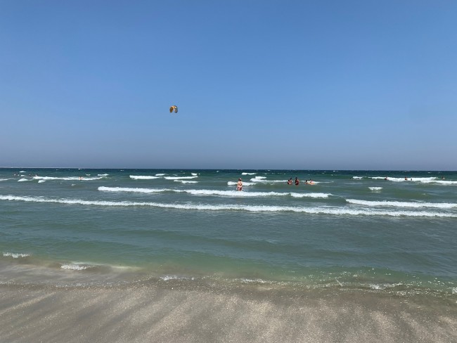 Po drodze śpimy tuż za Bukaresztem. Zjeżdżamy troszeczkę z autostrady, żeby było ciszej i spokojniej (44.417848, 26.264416). Na drugi dzień przed południem docieramy nad morze. Ponieważ uznaliśmy, że chcemy się zatrzymać na jakimś kampingu - wybraliśmy Mamaję, gdzie jest ich kilka. Kierujemy się na Camping paja DM NAVODARI (44.313331, 28.631418), gdzie według opinii zamieszczonych na Park4Night ma być cicho, spokojnie i zmodernizowane sanitariaty... Hmmm opinia chyba dotyczyła innego miejsca Kamping tuż przy nadmorskiej drodze /promenadzie, przy której jest masę knajp i knajpeczek prześcigających się w głośności muzyki a z drugiej strony mały lunapark. Sanitariaty?? Są. Nawet sprzątane na bieżąco natomiast z tą opisywaną modernizacją to chyba ktoś przeszarżował. Ale z drugiej strony- jest bardzo blisko do plaży, woda i prąd w wielu miejscach tuż przy kamperze, darmowa pralka i sympatyczna obsługa. Cena za nasz zestaw (4 osoby+pies) = 100 lei, więc też ok. Zostajemy na dwie noce.