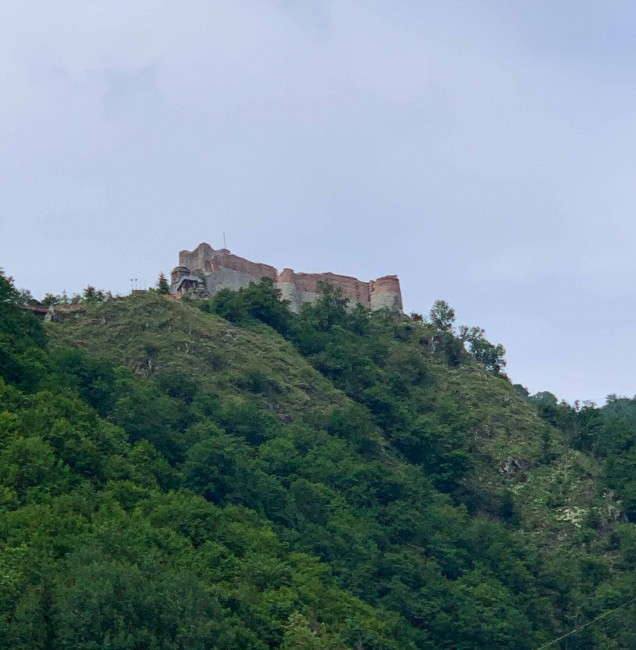 Zatrzymujemy się u podnóża góry, na której znajduje się zamek Poenari. W XV wieku urzędował tam Vlad Tepes zwany Palownikiem - pierwowzór Drakuli. Powszechnie, za zamek Drakuli uznaje się zamek Bran, jednak wg źródeł historycznych, Vlad Palovnik nigdy w nim nie mieszkał. Przy parkingu na którym się zatrzymujemy (45.349106, 24.631614) znajduje się początek szlaku w kierunku zamku, camping i restauracja. Ponieważ zamek jest obecnie tymczasowo zamknięty, zamiast do niego idziemy na Papanasa - rumuński deser składający się z pączków oblanych słodką śmietaną z owocami - polecam !