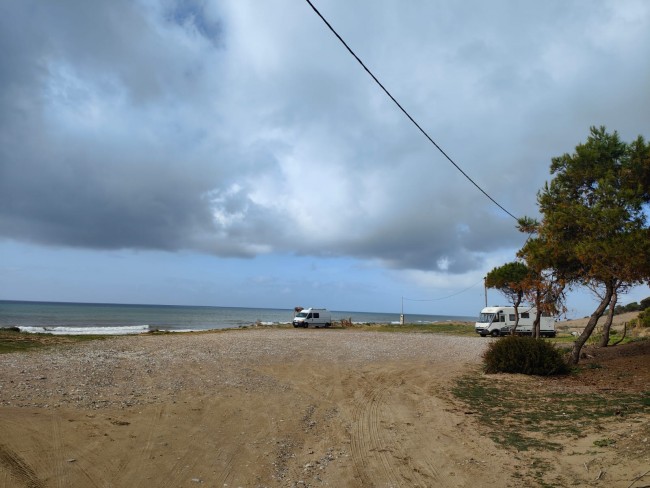 Cóż.."szewndamy" :-P z miejsca na miejsce bez konkretnego celu :szeroki_usmiech staliśmy kilka dni w Neochori .. jest woda, WC,spokojnie (tam co ZbigStan miał "zgrzyt"),wstąpiliśmy na piwo do "umarłej" tawerny :szeroki_usmiech