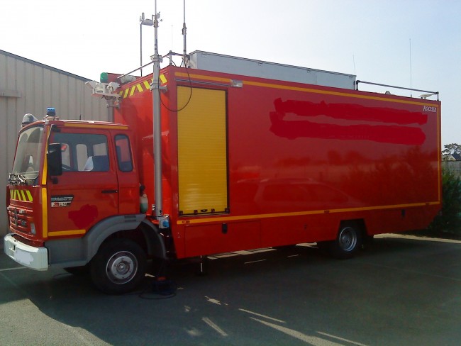 Od pewnego czasu, chodzi mi po głowie pomysł, budowy kampera na bazie ciężarówki kontenerowej. Ponieważ mojego obecnego kampera doprowadziłem do stanu, no, prawie idealnego, skończyły mi się pomysły typu, "co tu jeszcze zrobić?", a ręce świerzbią. Kołata mi się po głowie, nowy-stary pomysł, budowa kampera z ciężarówki. Mam możliwość kupienia Renaulta Midlinera z zabudową strażacką, takiego jak ten na zdjęciu poniżej.
