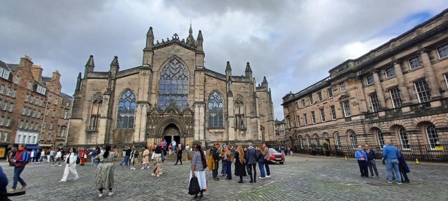 Opuszczamy ten krąg psa celebryty i stawiamy dzisiaj po raz drugi stopy na Royal Mile, słuchając opowieści przewodnika o Edynburgu i Szkocji, np. o tym, że woda pitna i leki są tutaj darmowe. Na potwierdzenie widzimy niebieski uliczny dystrybutor z wodą do picia. Funkcje dystrybutorów darmowych leków pełnię jednak standardowe apteki. Na Royal Mile wpadamy do katedry św. Gilesa, w której uwagę zwracają piękne XIX-wieczne witraże.
