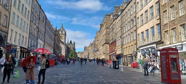 Podążamy dalej mijając kolejno biały dom Johna Knoxa prekursora reformacji w Szkocji, czerwoną skrzynkę pocztową z monogramem Karola III oraz legendarny pub „Na końcu świata”, obok którego w bruku mienią się złote tabliczki wyznaczające dawne mury i bramy miejskie. Dochodzimy do końca Royal Mile, a tam stoi nowoczesny gmach Parlamentu Szkocji. Nie jest to architektoniczna perełka mimo, że pochłonęła niebywałą kwotę 431 mln funtów, pełni jednak znaczącą dla Szkocji funkcję.