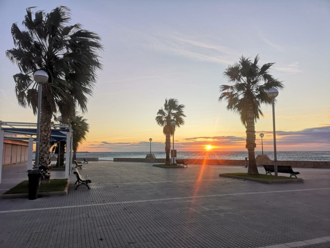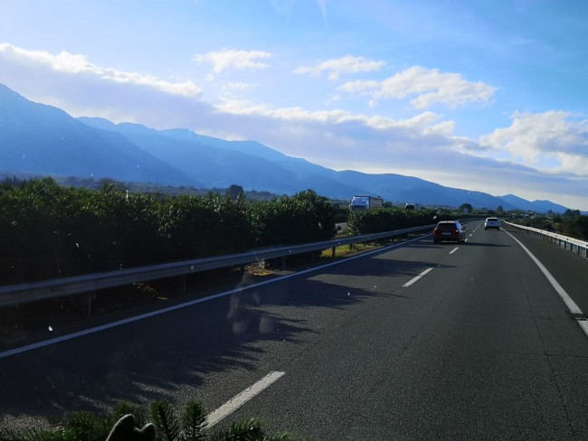 18.11. Dotarliśmy do Hiszpani. Słońce cały dzień, zaczęliśmy włączać klimatyzację, a podczas postoju otwierać okna. W Hospitalet de L'Infant gdzie się zatrzymaliśmy mocno wieje. Z parkingu przy promenadzie musieliśmy się przenieść w boczną uliczkę, pod osłonę domów. Chcielismy zostać tu kilka dni, aby odpocząć po podróży, ale jutro będziemy szukać miejsca gdzie nie wieje.