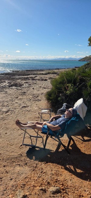 21.11. Po spotkaniu rozjechaliśmy się na różne miejscówki. My wybraliśmy w lesie, bez wiatru, blisko morza, Orpesa 40.063271 0.11754. Na plaży w osłoniętym miejscu było wystarczająco ciepło aby posiedzieć na słońcu.