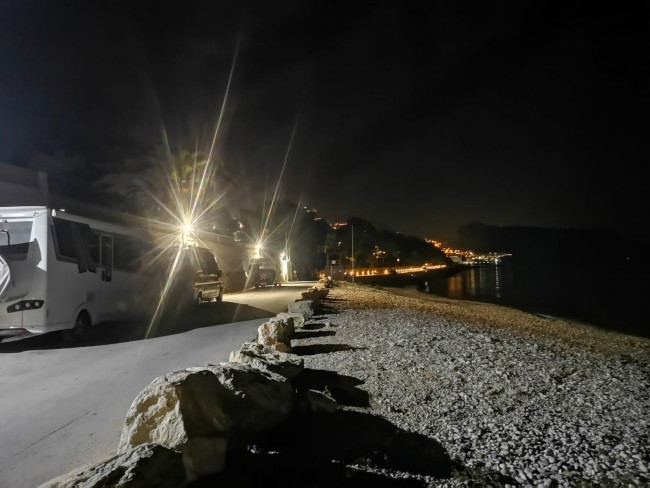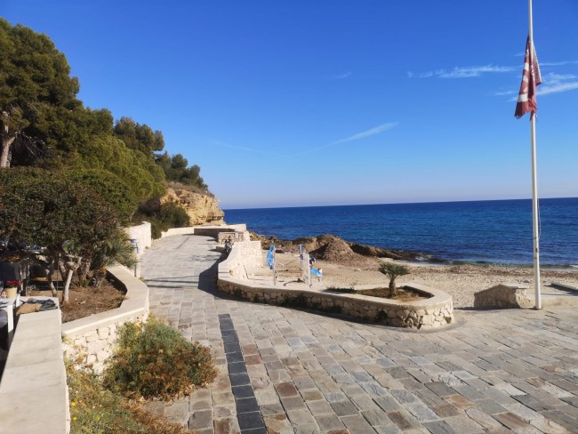 Po serwisie, zakupach i tankowaniu przenieśliśmy się do Altea 38.618189 - 0.029158 . Miejsce obok małej kamienistej plaży, przy murze klasztoru. Jedna z fajniejszych miejscówek blisko morza. Brak wiatru i można posiedzieć na plaży.