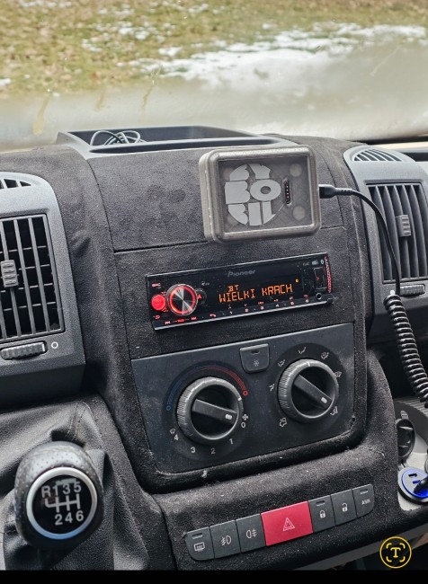 Bazujące na powszechnie dostępnym u majfrendów zestawie, w pełni programowalne sterowanie radiem chińskim lub Pioneer, przystosowane do kierownicy Ducato niewyposażonej w takie luksusy.