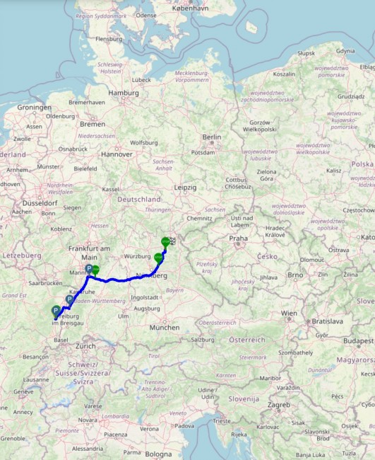 Jak się zapewne domyślacie i widać to na mapie, jesteśmy coraz bliżej domu i zakończenia podróży. Do Bayreuth 49.94475 11.593005 dotarliśmy późno i tym razem nie poszliśmy na spacer, a mieście jest wiele zabytków, z operą na czele, zamków i parków. Polecam też parking dla kamperów na którym stanęliśmy. Stąd blisko do wielu ciekawych miejsc, można stać 72h i jest serwis.