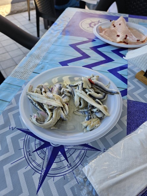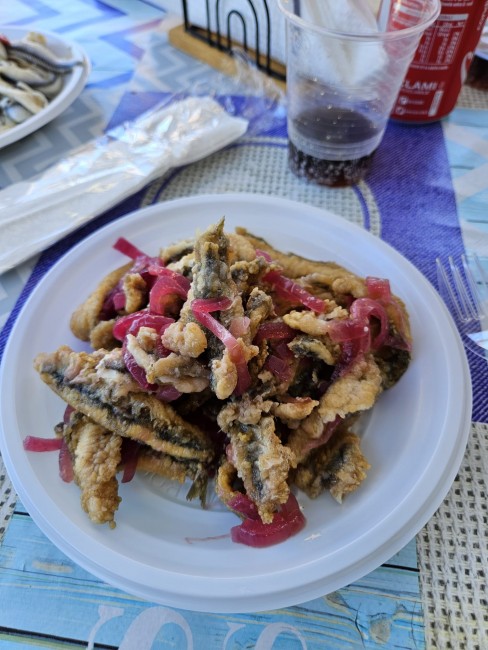 Jako, że miało być też o jedzeniu to poza baraniną Abruzzo to też ryby i owoce morza. Co ciekawe ceny znacznie niższe niż w naszych mazurskich czy nadmorskich smażalniach. Kilogram Frittura Mista czyli smażonych ryb i owoców morza to w poecie w Giulianovie 30 euro za kg. Dla nas na obiad bierzemy pół kg na 2 osoby lub 750 gr na trzy. Tym sposobem w dwie osoby mieścimy się w 20 euro za obiad z wodą i winem.