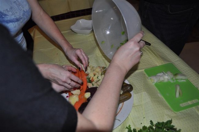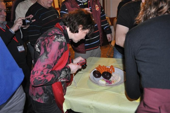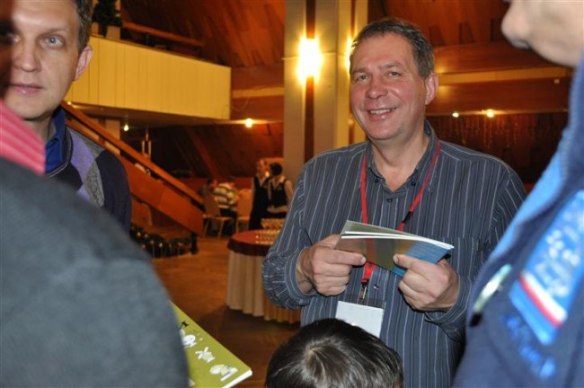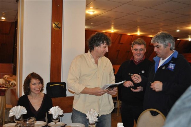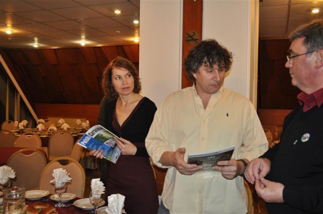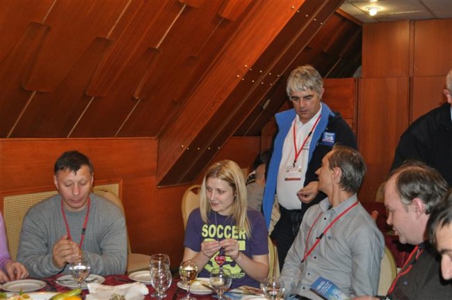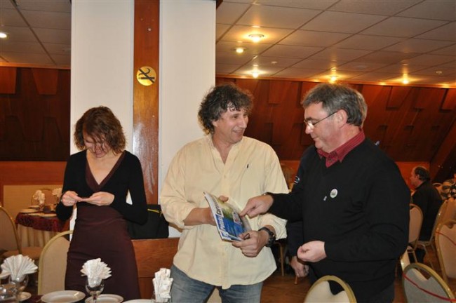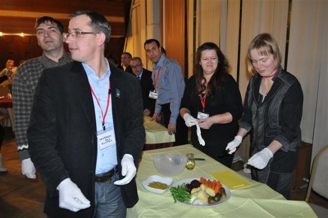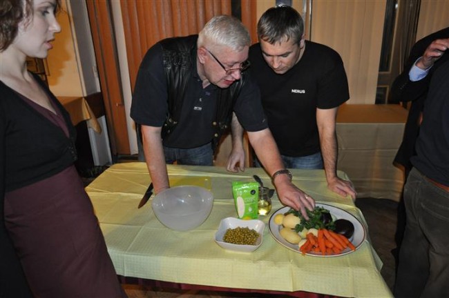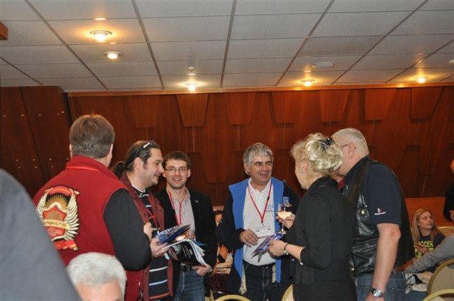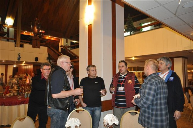 To był długi i pełen wrażeń dzień. Po powrocie z miodobrania chwila na zmianę ciuchów na bardziej wieczorowe i uroczysta kolacja. Był to bardziej wieczorek zapoznawczy niż kolacja. Wiele rozmów w zagranicznym towarzystwie z użyciem wszystkich języków świata rąk i nóg. Wymiana pamiątek i wizytówek. Umawianie się na przyszłe spotkania. Wszyscy dostali od nas przypinki z kamperkami, breloczki, otwieracze do piwa, nalepki wszystko z logo CamperTeam. Kilka osób dostało chorągiewki CT na samochód. Na spotkaniu nie wszyscy byli kamperowcami albo przyczepowcami, byli przedstawiciele kempingów lub biur turystycznych i ci flag nie dostali jako nie kamperowcy Myślę, że dzięki gadżetom które dostaliśmy od Prezessu a było tego 5 kg i naszemu nienagannemu zachowaniu zyskaliśmy sympatię u wszystkich zlotowiczów.