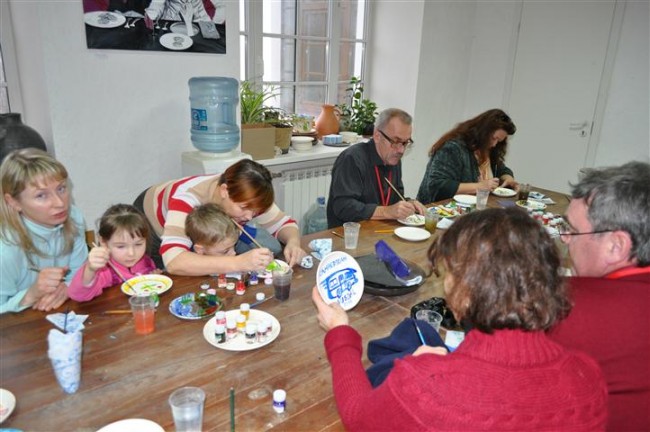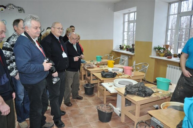 W części zakładu do zajęć praktyczno technicznych odbyły się zajęcia z produkcji i zdobienia wyrobów ceramicznych. Zostaliśmy podzieleni na dwie grupy. Jedna uczyła się odsługiwać koło garncarskie a druga malowała talerzyki.