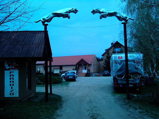 A my - po inauguracji rzeczywiście kiepskiego kempingu/pola namiotowego we Władku - via zamek malborski wylądowaliśmy na terenie Geotermii Grudziądz. Znowu "inaugurujemy", jesteśmy jedynymi lokatorami 'camperparku'. Podłączenie do prądu projesjonalne, a jakże, nie widzę tylko nigdzie miejsca zrzutu nieczystości ... Ale będę się rozglądał dalej ...