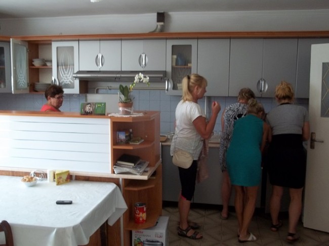 100_7546.JPG Naszym paniom strasznie spodobała się praca u ks. w kuchni nie chciały nikogo z mężczyzn dopuścić, same między sobą pokazały co potrafią |