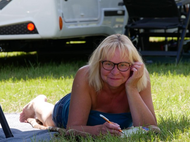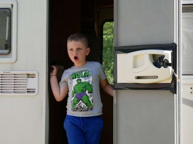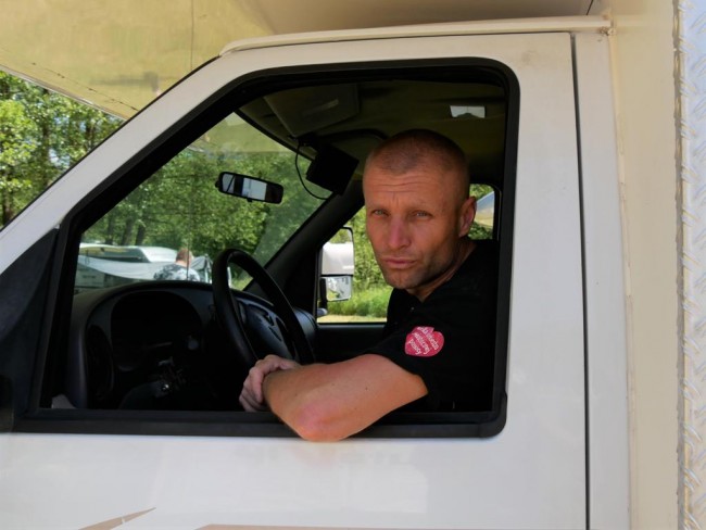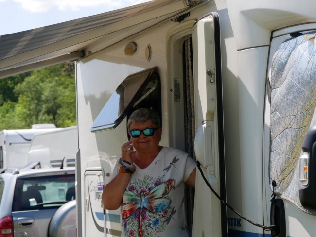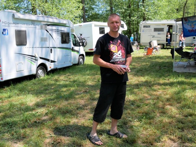 P1400282-1024x768.JPG Ten Gościu zna każdą gazośrubkę w tej kamperowej wiosce. |
