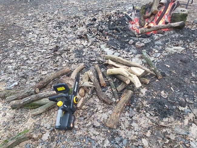 piłę łańcuchową i siekierę do drewna na ognisko.