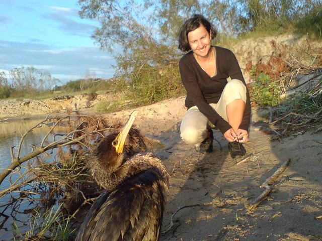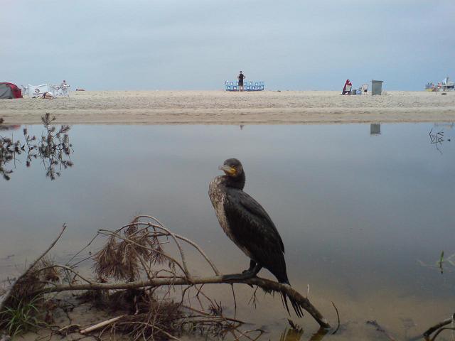 Ten ptak to kormoran(tak mi sie wydaje) i niestety juz nie zyje.Bardzo polubil go nasz syn,chodzil ogladal go i fotografowal.Wydawalo mi sie ze jest mlody.W sobote nasz syn wstal rano i polecial robic mu zdjecia,po chwili wrocil z placzem,ze ptak nie zyje.Nie wiem czy zabil go ktos czy moze zdechl,w kazdym razie nasz syn mocno to przezyl. |