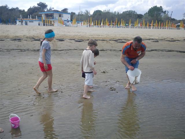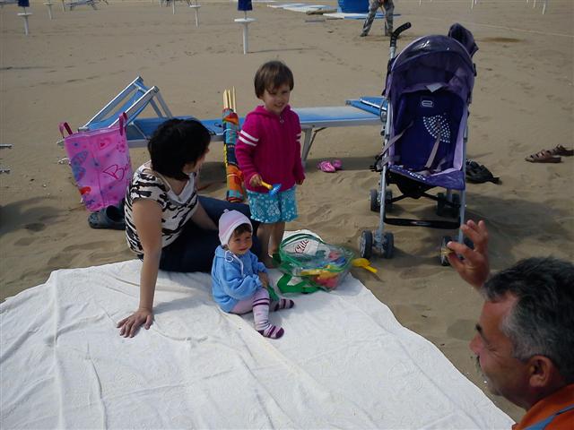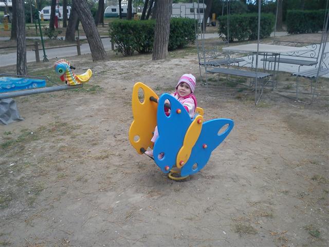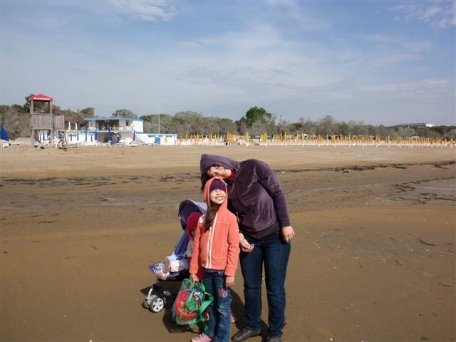 27.04.2011 - Rano pogoda nie zachęca nas do pozostania więc żegnamy to miejsce , pozostał na kampingu tylko jeden kamperek z niemiec . To jeszcze nie sezon trwają prace przygotowawcze do sezonu. Jedziemy w kierunku Wenecji i czym wyżej tym bliżej są tory kolejowe a plaża z piaszczystej zmienia się w kamienistą i decyzja pada na sprawdzone Lignano . Po południu docieramy za Wenecję do miejscowości Lignano i kotwiczymy się na campingu Pino More www.campingpinomare.it . Co prawda wieje duży wiatr. Ale mamy nadzieję że pogoda się zmieni . Na campingu spotykamy małżeństwo z polski ( Wodzisławia Śląskiego) z chłopcem (Szymonem) o rok młodszym od naszej Magdy.