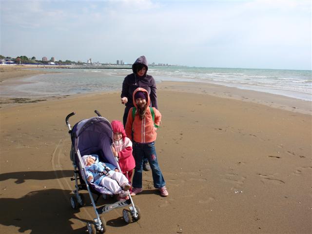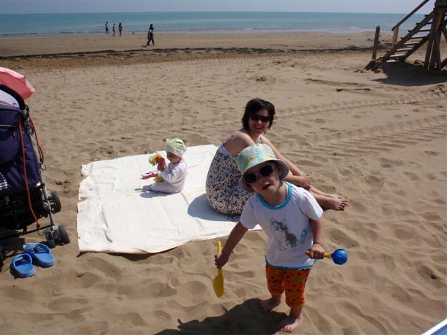 28.04.2011 – Rano wyruszamy na rowerach w miasteczko na kawkę dla dzieci pyszna czekolada na gorąco z serduszkiem później małe zakupy. Po południu pogoda się stabilizuje i się wypogadza wiec idziemy na spacer nad morze. Plac zabaw , rowery i inne zabawy dzieciaków. Po południu mamy ochotę na pizzę z campingowej restauracji gdzie jest oddzielne stanowisko do pizzy i czeka kucharz na chętnych –zamawiasz idziesz do kasy płacisz a kucharz z wcześniej przygotowanego ciasta robi pizzę na twoich oczach wkładając ją do pieca i ta przyjemność za jedyne 6-9 euro ( duża cienka pizza)