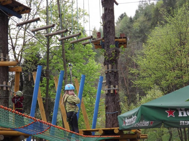 Ranek obudził nas brakiem deszczu , temperaturą 10 C wiec trzeba coś pochodzić. I tak : park linowy, huśtawki i lody w centrum ( lody najpyszniejsze jakie jadłem ), wędrówki po lokalnych źródełkach. Było zimno ale bezdeszczowo. Wieczorem musiałem właczyć ogrzewanie więc przynajmniej 2 ręczniki mieliśmy suche . Bajka ...