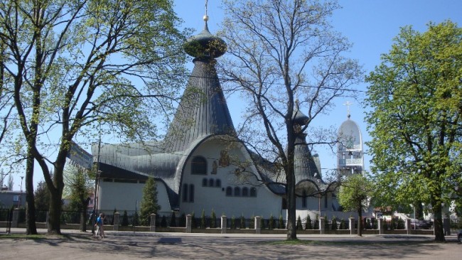 W końcu udało nam się dotrzeć do Hajnówki. Chwilkę się kręciliśmy szukając charakterystycznej cerkwi pw. Trójcy Świętej, ukończonej w 1981 r, która mimo młodego wieku (a może właśnie dlatego) jest dumą Hajnówki. Od 1982 co roku odbywa się w niej Międzynarodowy Festiwal Muzyki Cerkiewnej. We wszystkich festiwalach wzięły udział łącznie aż 494 chóry z 31 krajów Europy, Ameryki Północnej, Azji I Afryki.