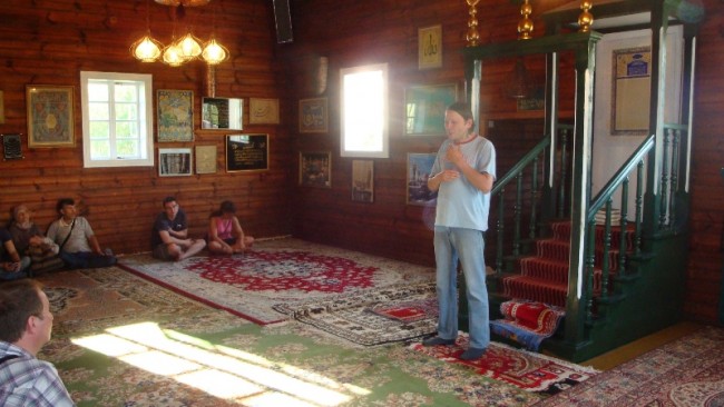 2012.05.01 wt (73) Kruszyniany, Meczet.JPG W meczecie, słuchamy opowieści tatara |