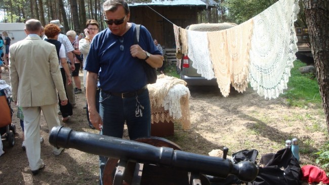 Jak stanąłem na skrzyżowaniu polnych dróg zapchanym tak, że nie było mowy o zawróceniu, to na szczęście przechodzący człowiek poinformował nas, że dalej w lesie jest duży plac. Przedzierając się przez szpaler samochodów, musieliśmy złożyć lusterka, bo nie dało się przejechać. Faktycznie jadąc kawałek drogi przez las wyjechaliśmy na olbrzymią polanę, na której było już trochę samochodów. A stąd bliziutko na targ.
