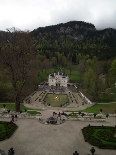 Po porannej wyprawie nad okoliczne jeziorka wyjechaliśmy przez tunel nie tylko z Fussen ale także z Bundesrepublik Deutschland, by przez austriackie Reute (zakupy) i plansze wrócić do Niemiec pod pałac Linderhof. Parking za 3,50 i półtorej godziny (pomimo deszczu) pozwoliło na zwiedzenie areału pałacowego.