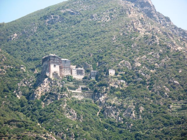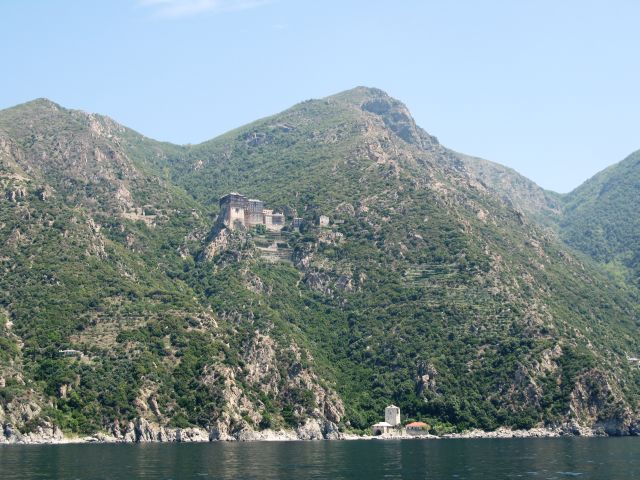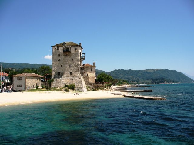 Z Pelli ruszamy na Athos – to najbardziej oddalony na wschód „palec” Chalkidiki. Jest dostępny dla zwykłych śmiertelników tylko w swojej początkowej części, czyli do miasteczka Ouranopoli – dalej zaczyna sie pilnie strzeżona Republika Mnichów zwana Agion Oros. Jest tam normalna granica, pilnowana przez policję. Wstęp tylko dla mężczyzn i ze specjalnym pozwoleniem...