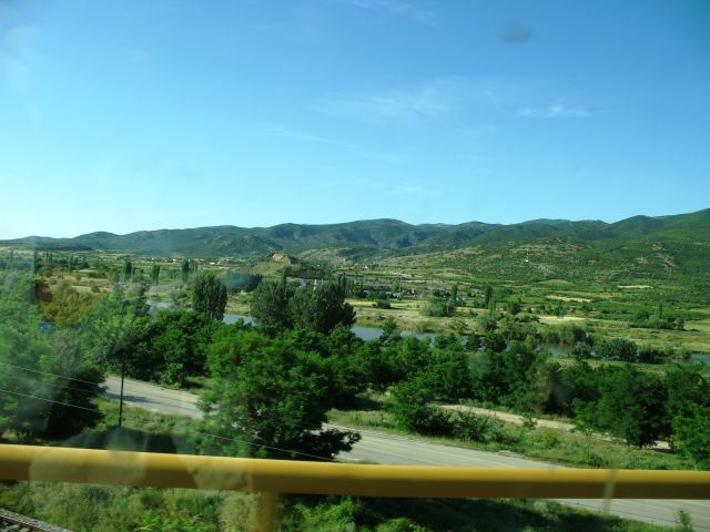 Na granicy szybciutko – kontrola zupełnie bezbolesna i jesteśmy w Macedonii. Kawałek za granicą wyprzedzam 2 TIRy z Pragi – nasi! Już mi raźniej i bezpieczniej :D Macedonię przelatujemy bez problemów i tylko krowa w pierwszej budce opłat na autostradzie psuje mi humor. Zapłaciłem jej 2,40 Euro (bo tyle chciała), ale jak za chwilę przeliczyliśmy, to opłata wynosiła 1,40 E! Małpa!!! Na następnej bramce daje 1 Euro i nic mnie nie interesuje! Gość coś marudzi pod nosem, ale daje bilecik i jedziemy. Do końca Macedonii na każdej bramce daje 1 Euro i nic, totalnie nic nie mówię, tylko czekam na bilecik – zawsze reakcja taka sama: mruczą pod nosami, ale dają. Co za dziwny kraj! Ale ładny Nawet z autostrady widać, że warto zatrzymać się tutaj na dłuższą chwilę...