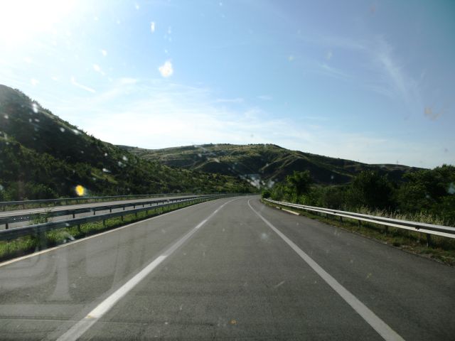 Nie wiem do końca czemu, ale jadąc odcinek od granicy z Macedonią do autostrady w Serbii, czuję się jak na zakopiance w Polsce. Ten krajobraz chyba jest jakoś dziwnie znajomy, szczególnie już trochę dalej od granicy... Po drodze mijamy jadącego z przeciwka kamperka na polskich numerach zaczynających się od SB..... Proszę się przyznać, kto jechał!