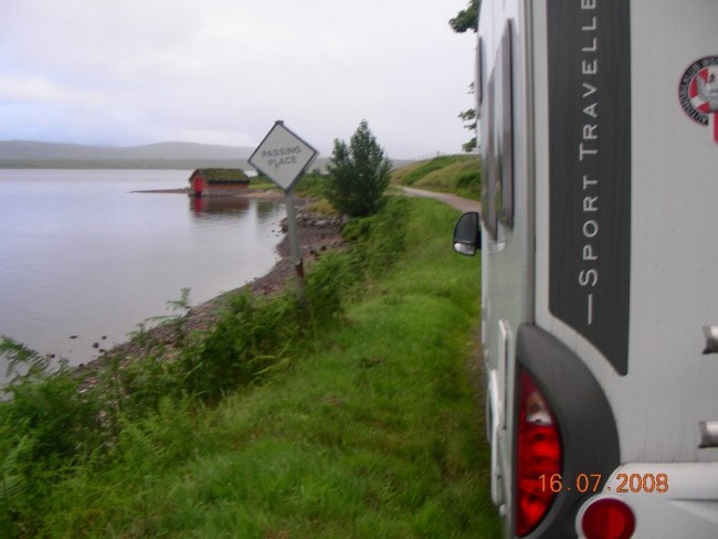 2008.07.16 Środkowa Szkocja. Droga na 1 samochód, widać tabliczkę Passing Place121.JPG