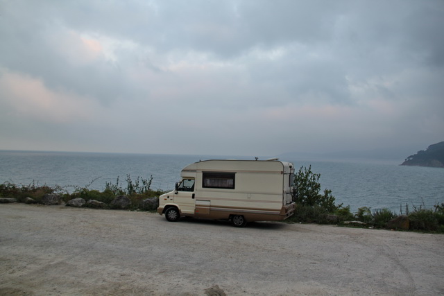 Jadąc ku wybrzeżu myśleliśmy że uciekniemy od gór ale tu to niemożliwe. Jedziemy wzdłuż a droga jak na Salmopol i tak prawie cały czas góry schodzą prosto do morza.