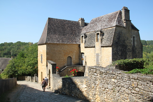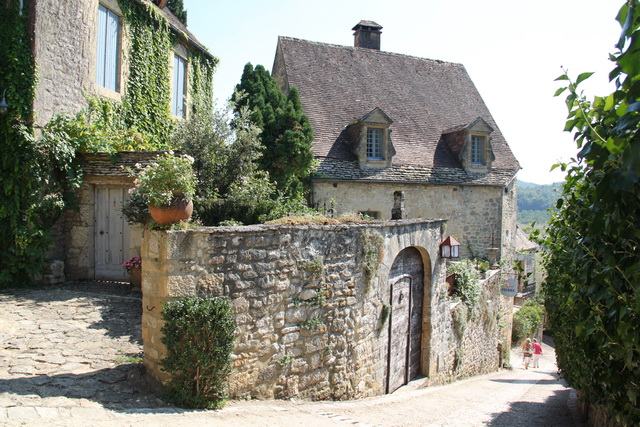W korkach przedzieramy się przez kurorty Biaritz, Baiyone, i kierujemy się w kierunku doliny rzeki Dordogne. Tam włóczymy się wzdłuż rzeki zwiedzając pięknie położone wioski i zamczyska wkomponowane w nadbrzeżne skały. Nocleg na stellplatzu w Montfort za free N44.83569 E1.24900 woda, czyste toalety, plac załadowany prawie do pełna.