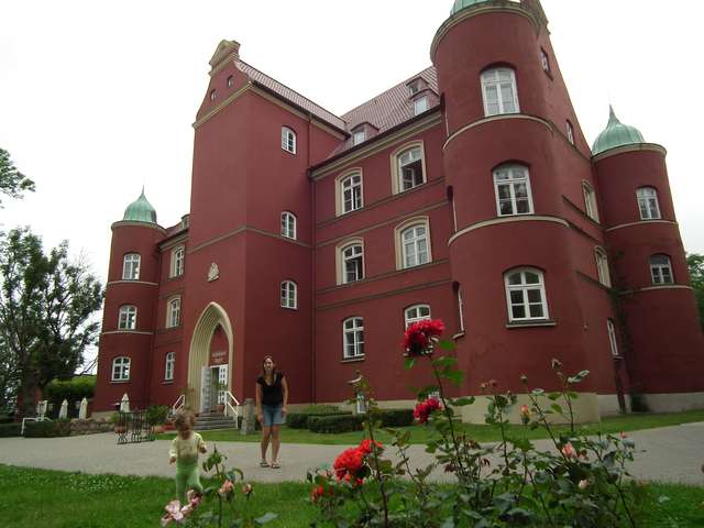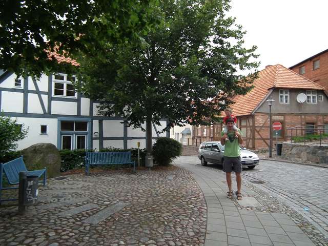 Po wyjeździe skierowaliśmy się na zamknięty w dniu wczorajszym parking i będąc pierwszym parkującym samochodem wyruszyliśmy szlakiem na zamek Granitz. Tam obejrzeliśmy jego bryłę i wnętrze zamkowego sklepiku. Pogarszająca się pogoda i tęsknota za polską siermięgą i polskimi cenami skłoniły nas do opuszczenia Rugii. Drogą przez Putbus i Garz, unikając o włos spotkania trzeciego stopnia z sarną dojechaliśmy przez stary most zwodzony z powrotem do Stralsund. Tu po poszukiwaniach (bezskutecznych) znamki z żaglowca Gorch Fock i (skutecznych) drobnych na automat do wody na tamtejszym stellplatzu ostatecznie opuściliśmy ten rejon. Drogą przez zabytkowe centrum Greifswald z ostatnim tam niemieckim tankowaniem, ostatnią niemiecką przerwą kawową w sympatycznej miejscowości Katzow, ostatnimi niemieckimi zakupami w Wolgast, pominięciem pierwotnie planowanego postoju w Peenemunde i nie pominięciem zakupu znamki i małego spaceru w Zinnowitz dojeżdżamy do granicy i Świnoujścia...