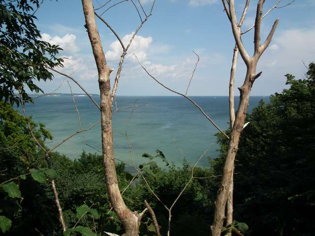 Poranek wstał dość pochmurny lecz nie wpłynęło to w żaden sposób na nasze plany. W pierwszej kolejności droga doprowadziła nas do zamku Spyker. Wraz ze zbliżaniem się do kredowych klifów Parku Jasmund pogoda stawała się coraz gorsza. Ulewny deszcz wstrzymał nas w samochodzie po zaparkowaniu na parkingu przy pensjonacie Kleine Forsterei, który okazał się tańszy od dużego stellplatzu z wydzielonym miejscem dla kamperów. Przeczekawszy największy napór ulewy wyruszyliśmy główną drogą (w towarzystwie licznych autobusów kursowych) w kierunku największych atrakcji Rugii. Pierwszym odwiedzonym i zwiedzonym miejscem był balkon widokowy Victoriasicht. Na drodze do drugiego - centrum turystycznego przy Konigstuhl stanęły nam budki kasowe z zaporowymi cenami, co w połączeniu z mżawką znacznie pogarszającą widoczność zniechęciło nas do wejścia. Droga powrotna prowadziła szlakiem przez środek powyżej wspomnianego parkingu. Przejście pozwoliło zaobserwować możliwość obsłużenia kamperka w ramach podstawowej opłaty za media bez płacenia za wjazd na parking (do 15 minut bezpłatny). Takiej okazji nie można było zmarnować i jej nie zmarnowaliśmy. Powrót do samochodu zgrał się z ustaniem deszczu, a Sassnitz, do którego następnie się skierowaliśmy powitało nas prawie dobrą pogodą. Jak zwykle chwila na poszukiwanie odpowiedniego parkingu i postój na placu przy samym nabrzeżu portowym. Spacerkiem obeszliśmy całe miasto i nastąpił wyjazd w kierunku południowym z planem znalezienia w niedalekiej odległości noclegu. Niewielka odległość była konieczna z powodu chęci zakupu kolejnej znamki, a punkt sprzedaży w dniu dzisiejszym był już nieczynny. Pierwszy niecelny strzał nastąpił w okolicach pola golfowego przed nowym portem koło Sassnitz. Druga, tym razem bardzo udana, próba nastąpiła wraz z wjazdem na leśny parking ciągnący się wzdłuż drogi na Binz za miejscowością Neu Mukran. Wieczorem udało się z Berą wyjść na prawie pustą kamienisto-piaszczystą plażę odłegłą o kilkadziesiąt metrów od parkingu.