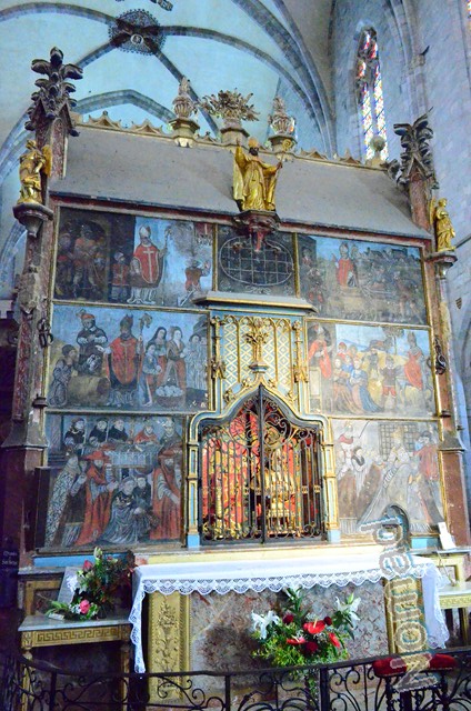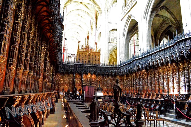 krużganki,skarbiec,przepiękne stalle z XVI-go wieku i grobowiec św.Bertranda.