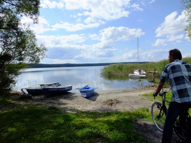 Jak wspomniałam, za sprawą i pomocą Łosia dotarliśmy do Biebrzańskiego Parku Narodowego, do przemiłych ludzi w leśniczówce Woźnawieś. Od leśniczego Jurka chcieliśmy jedynie uzyskać info, gdzie możemy się zatrzymać, więc zostaliśmy zaproszeni na ich posesję. Uruchomiliśmy nasze rowery i ....uskuteczniliśmy objazd pięknych terenów. Przy okazji znaleźliśmy 2 fajne miejscówki u prywaciarzy z dostępem do jeziora za 30zł/ doba od kampera+woda, prąd rozliczany wg wskaźnika zużycia.