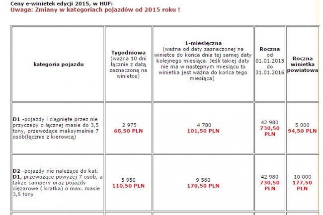 Jacku, czy nowe przepisy węgierskie od stycznia tego roku (kampery w kategorii D2, winiety na drogi wojewódzkie) podwyższą nam koszty dojazdu do Berek od Słowacji (via Eger)?