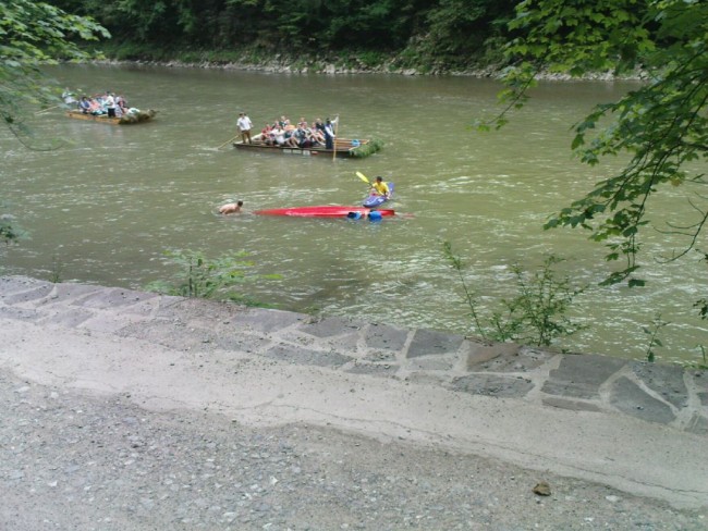 Wakacje z Olą 2014 r.-117.jpeg Wywrotka polskich kajakarzy na Dunajcu. Bywa i tak. |