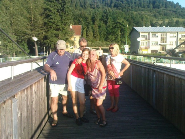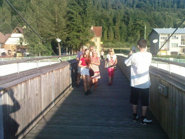 Wakacje z Olą 2014 r.-130.jpeg Kładka na Dunajcu jest - jest. Znajomi na kładce są - są. Wracamy z kawiarni Tulip. |