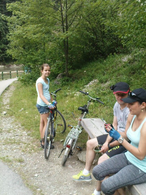 Wakacje z Olą 2014 r.-114.jpeg Mała przerwa na szlaku rowerowym do Szczawnicy. |