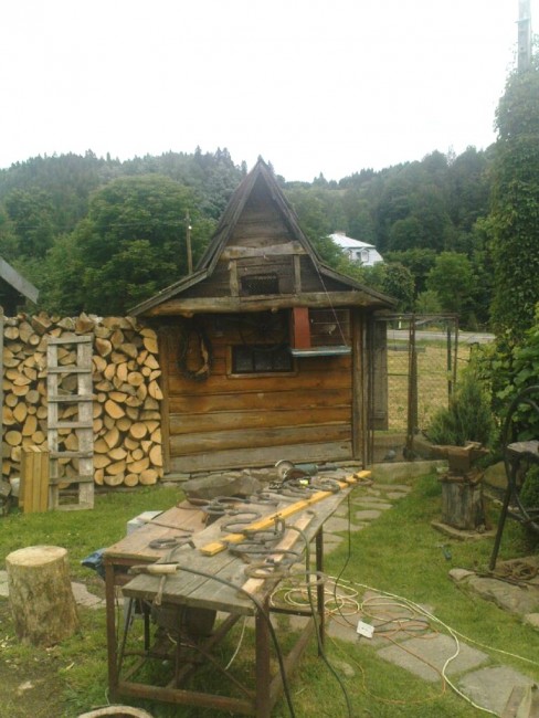 Wakacje z Ola 2014 r.-69.jpeg Oryginalne dekoracje obejść domków w Cisnej, przy drodze wiodącej w kierunku bacówki Pod Honem. |