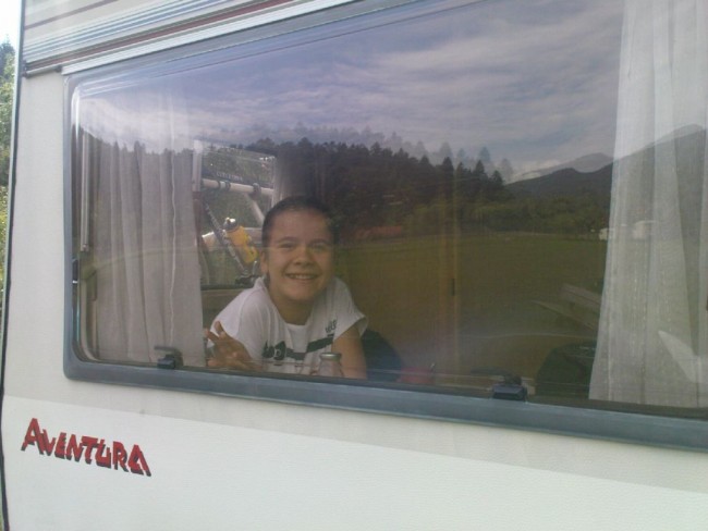 Wakacje z Ola 2014 r.-55.jpeg Przed wjazdem na teren pola namiotowego TRAMP w Cisnej. |